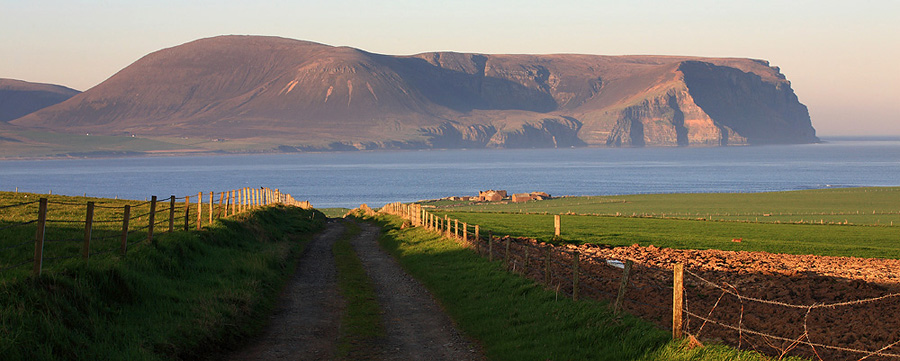 The Orkney Islands are largely all alike, low-lying, fertile with rolling green fields, streams and small lochs. The exception is Hoy,