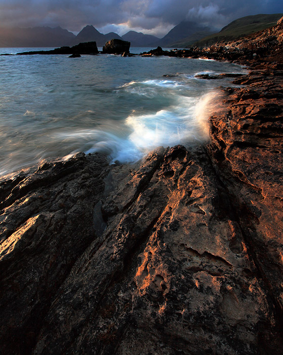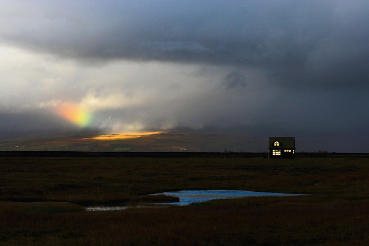 October is Iceland's rainiest month, but blustery autumnal weather interspersed with sunshine makes great conditions for photography. This solitary house guards a rough track to the farms on the far hills, and its windows were lit up by reflection of the bright sky clearing behind me. The sunbeam only penetrated the gloom for a short minute.