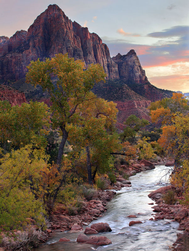 Zion National Park, Utah, USA. This park and especially this view is far from what you might describe as 'wild', with a busy scenic road and hotels and restaurants just minutes away. But sometimes it's what the scene represents which is important: this mountain will remain long after the human race has disappeared.