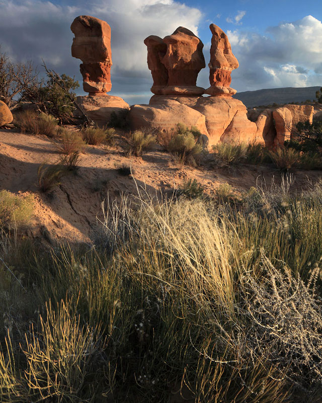 Devil's Garden, Grand Staircase-Escalante National Monument, Utah, USA. Down the long sandy Hole-in-the-Rock dirt road near Escalante lies Devil's Garden, an area of petrified sand dunes and fascinatingly sculpted sandstone hoodoos. A gentle wind allowed me some impression of movement in the foreground grasses.